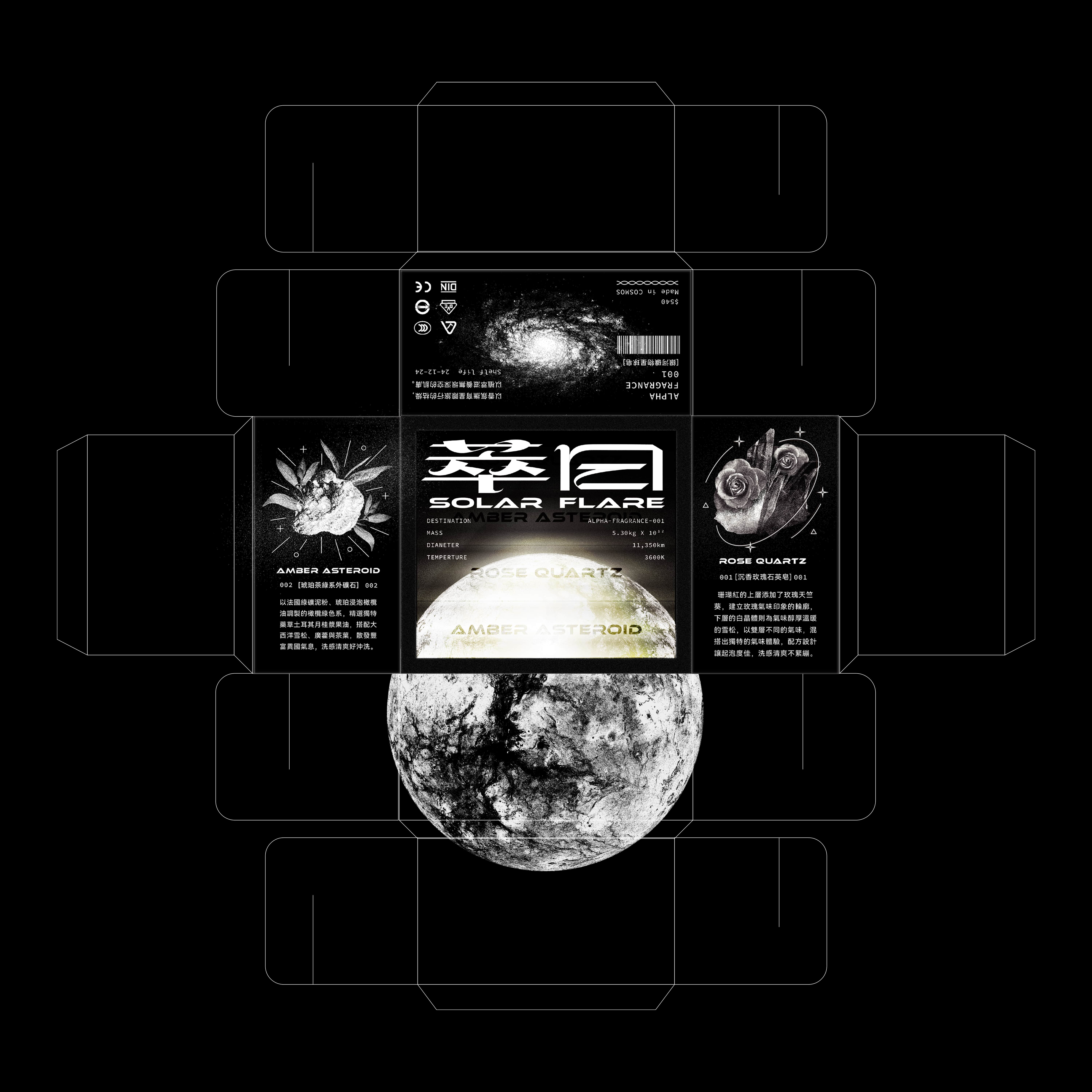 A sensory collection inspired by celestial matter and earthly minerals. Each fragrance captures the quiet collision between nature, material, and energy.